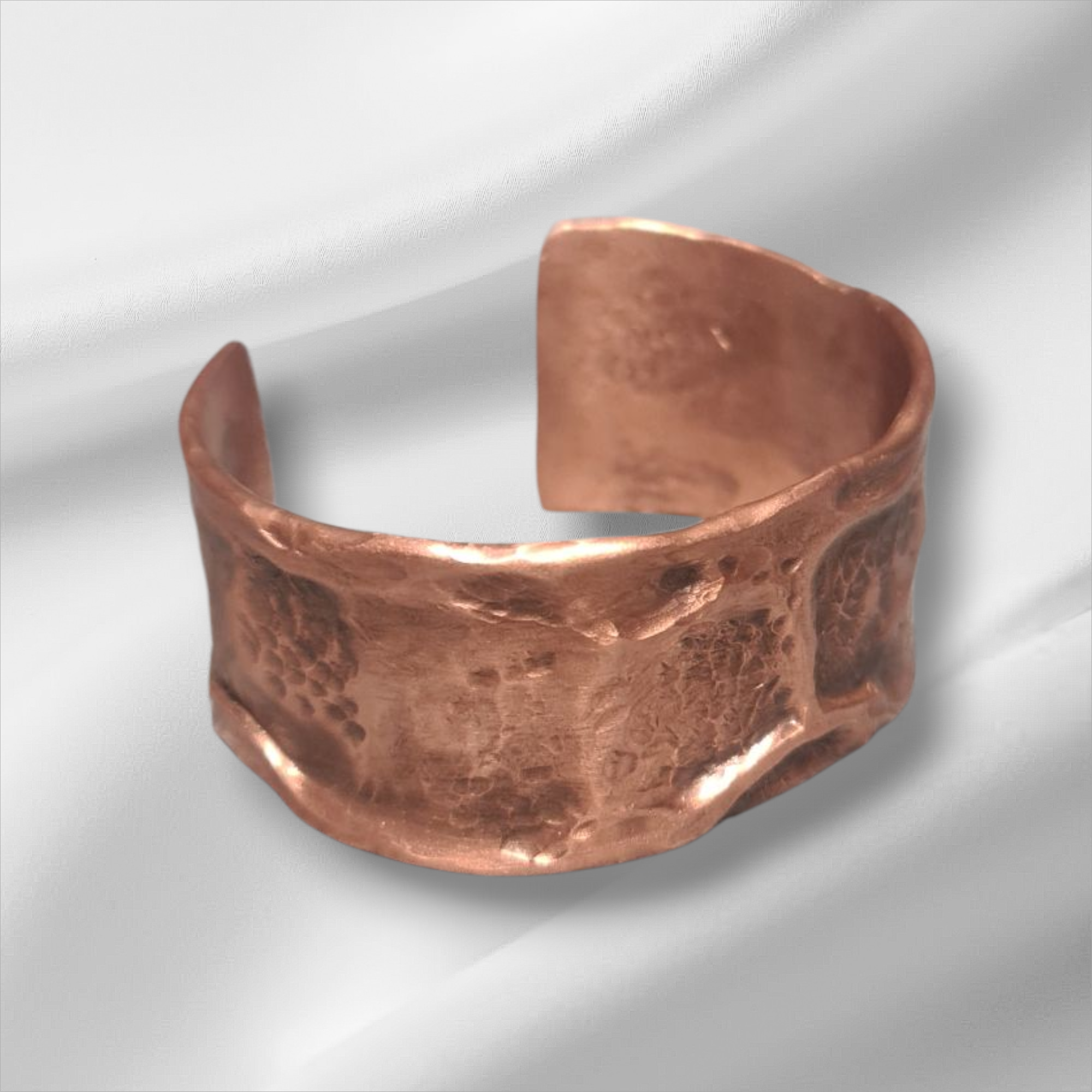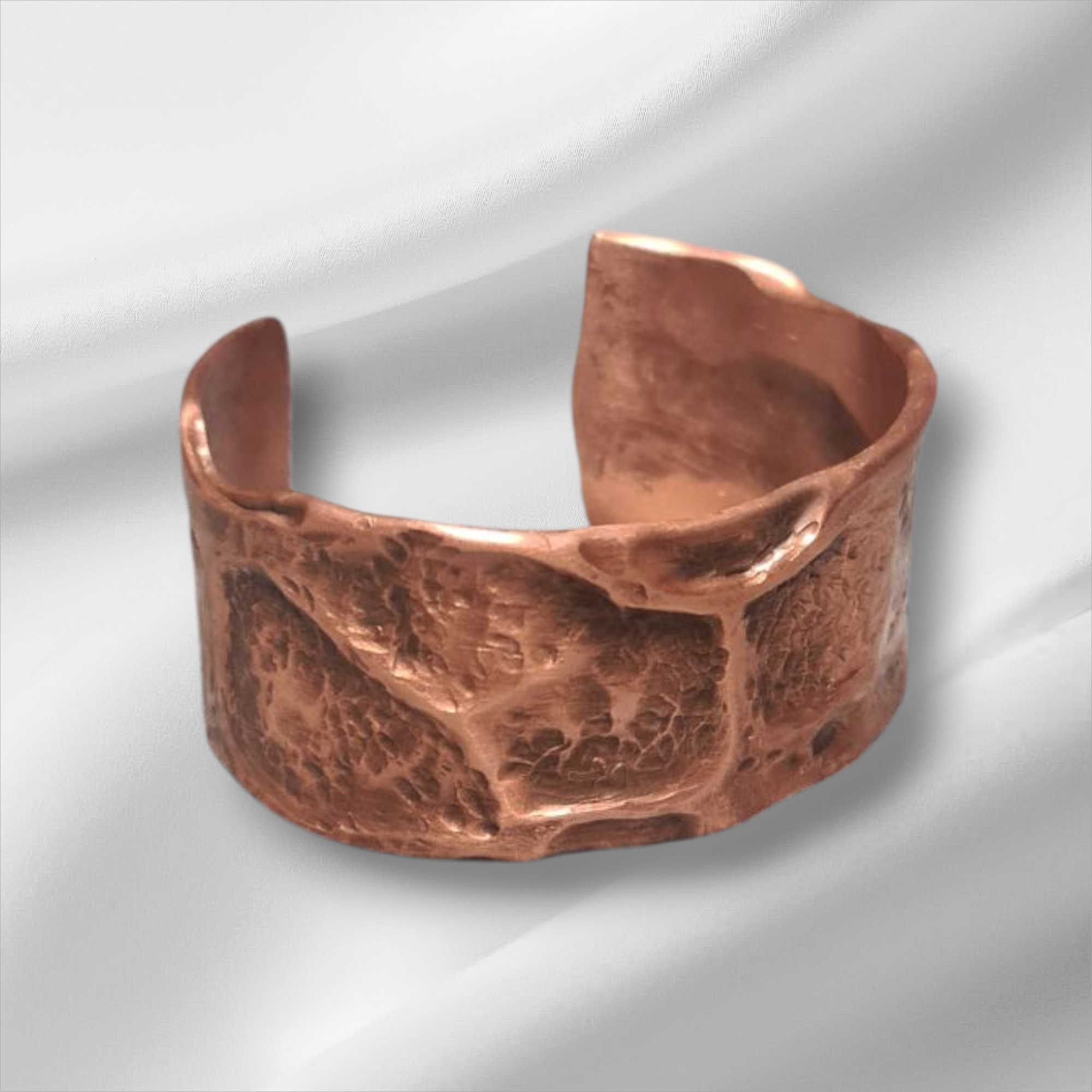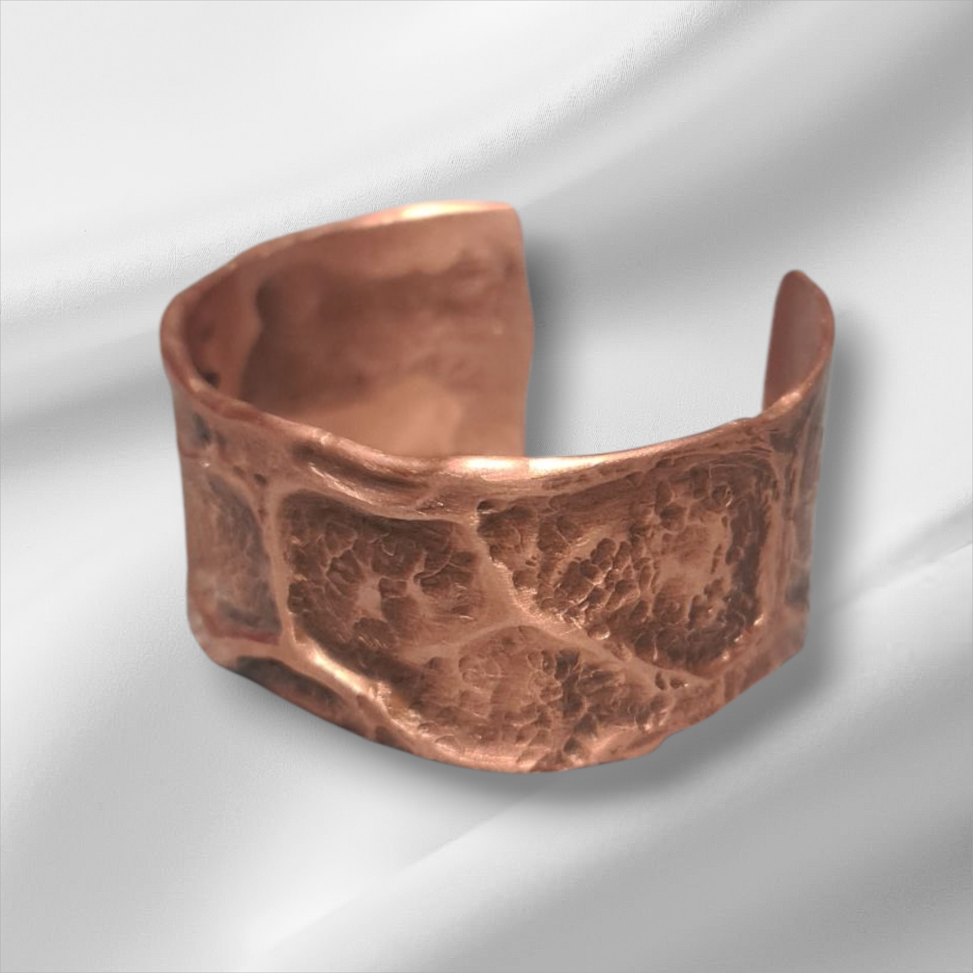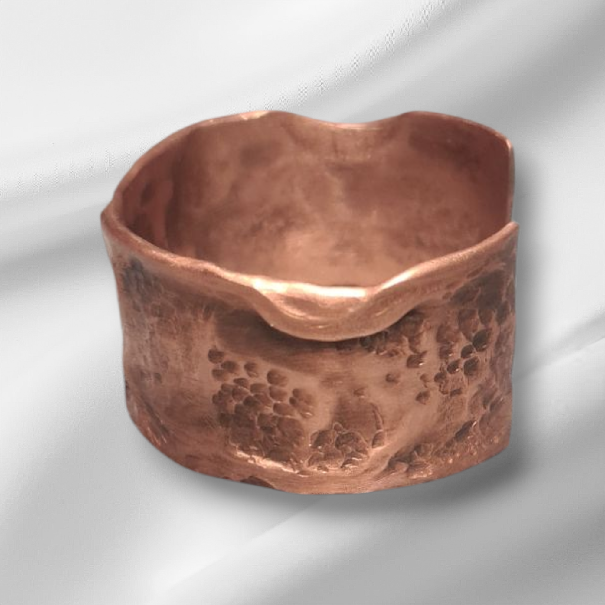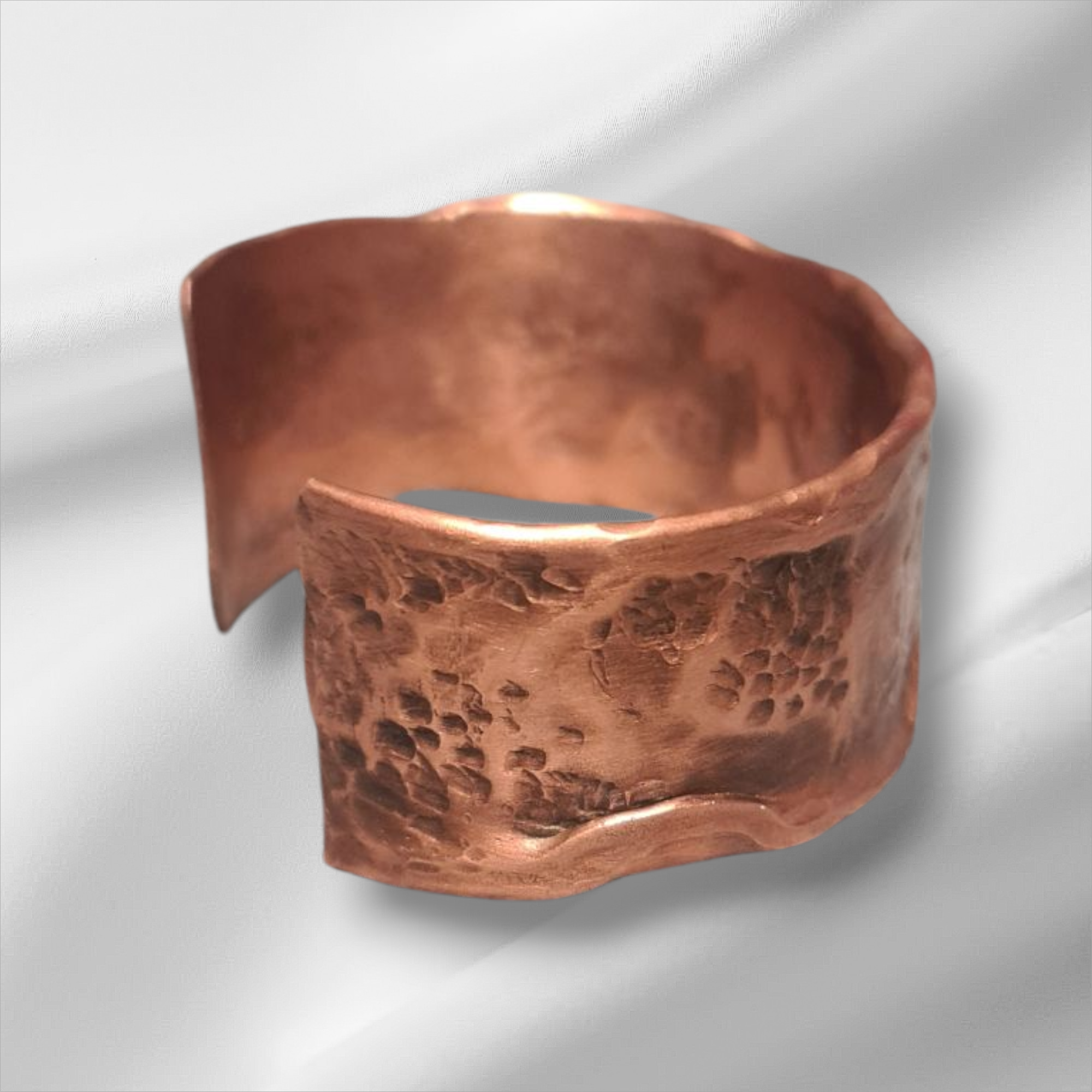 Bransoletka Berg to unikatowy rodzaj biżuterii wykonywany całkowicie ręcznie z rurki miedzianej techniką młotkowania i obróbki cieplnej.